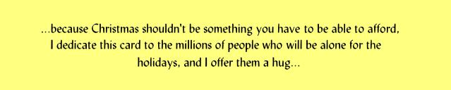 | The Christmas card you are about to view was originally conceived in the fall of 1995, while I was living in California. The previous year, I'd done my first "mass produced" greeting card, except, each card was hand painted (no two were alike), and they were numbered (1 of 17, 2 of 17, etc). They were given to my closet friends, and a celebrity or two (Brendan Fraser and Anne Rice both received one). Unfortunately, I only got as far as printing the new card, but never painted them. The reproduction you see here is 90% faithful to the original...the card stock was a light color (like the beige color you see), and the text style was very similiar. The first panel is what the cover would have looked like after I would have painted in the "railroad tracks". Those were added on my computer, thanks to a wonderful paint program. The second and third panels are what was written inside the card. The text in the third panel is actually bigger than it was in the card (it was in small text, at the very bottom of the inside of the card), but I enlarged it here so it was easier to read. The fourth, and final, panel is the text on the bottom of the back of the card. The red insignia is my trademark...combining the S and P of Simply Perfect. The only change to this portion of the card is the year in which it was produced (the printed cards all say c 1995). I hope you enjoy the card, and its meaning. I wish you all, my dear friends, a joyous and wonderful holiday season. Be thankful not so much for all that you have, but moreso for all those that you know, and those that you love. Happy Holidays! With Love, Bert |